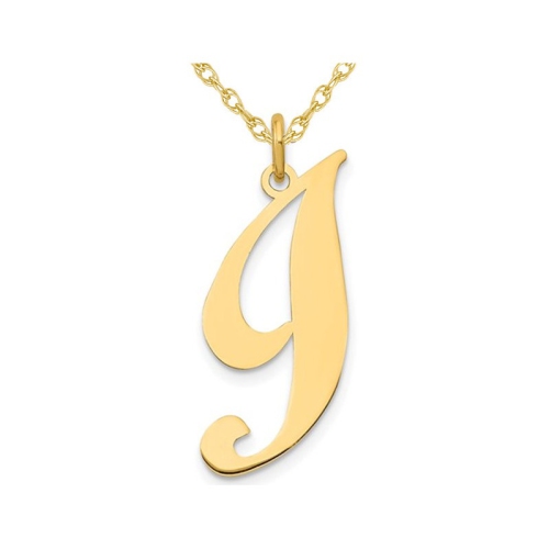 A stylish and meaningful gift for yourself or someone you love, this letter initial - I - pendant is fashioned in polished 10 karat yellow gold. The look is complete with a matching 18 inch gold chain, for an elegant accessory you'll love sporting at every opportunity. This classic fancy script design is 4/5 inch in length and 2/3 inches wide and weighs 0.51 grams. This pendant is part of the Gem
