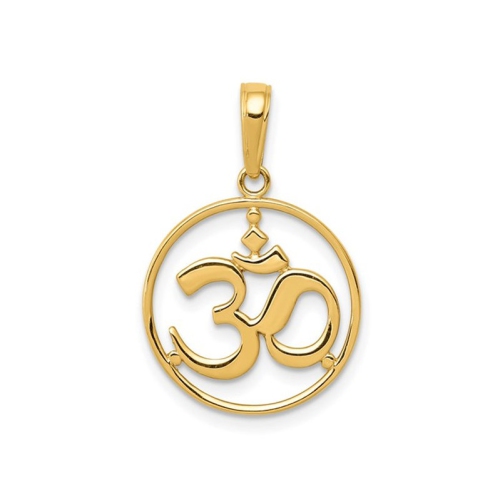 A classic OHM symbol crafted from shimmering 10 karat yellow gold. This polished symbol weighs 1.30 grams and is a 3/4 inch wide and a 3/4 inch long. NO CHAIN is included only the pendant.