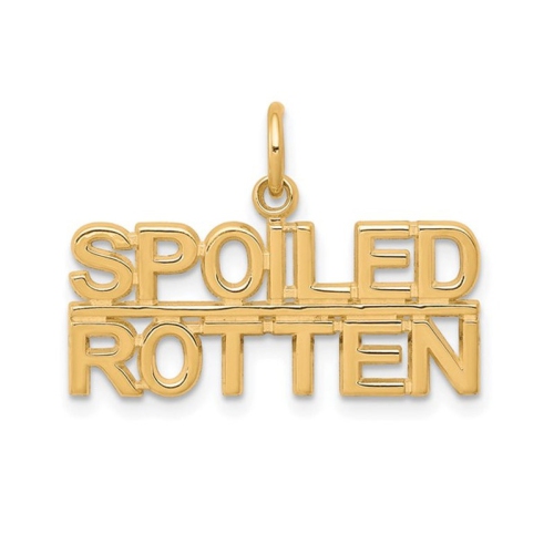 Show your love with this special charm pendant crafted from polished 10 karat yellow gold. This - SPOILED ROTTEN - charm is 2/3 inches in length and 1 inches in width and weights 1.15 grams. This 10 karat gold pendant does not include a chain.