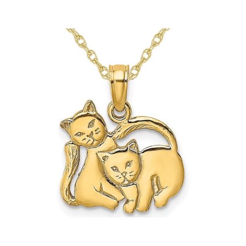 10K Yellow Gold Two Kittens Pendant Necklace with Chain