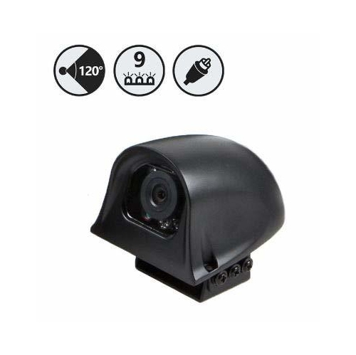 pThis 120deg; angle side camera is the clearest and greatest camera available on the market today. It boasts a 250000 pixel 2.1 mm lens with 9 infra-red illuminators which enables you to see in total darkness. The casing of the camera has a IP68 rating which can withstand all weather conditions. Camera comes with cable select length from dropd