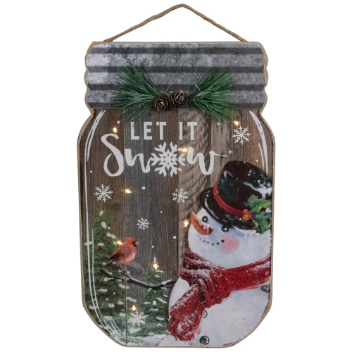13.5" Battery Operated Mason Jar with Snowman "Let It Snow" Christmas Wall Sign