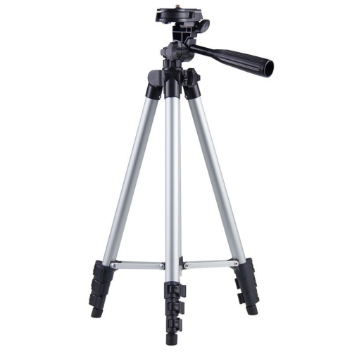 The multifunctional aluminum alloy tripod is made of lightweight and durable 130cm silver aluminum alloy material, with a load-bearing capacity of 2KG, suitable for various shooting scenes. The tripod is divided into three sections, and the lowest folding height is only 29cm, which is easy to carry and supports quick assembly and stable shooting.