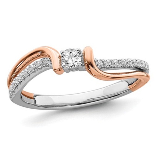 A simple and elegant design with sparkling diamonds 1/5 carat (ctw) set in unique motif of crisp 14 karat white and rose pink gold makes this a special promise ring to have.
