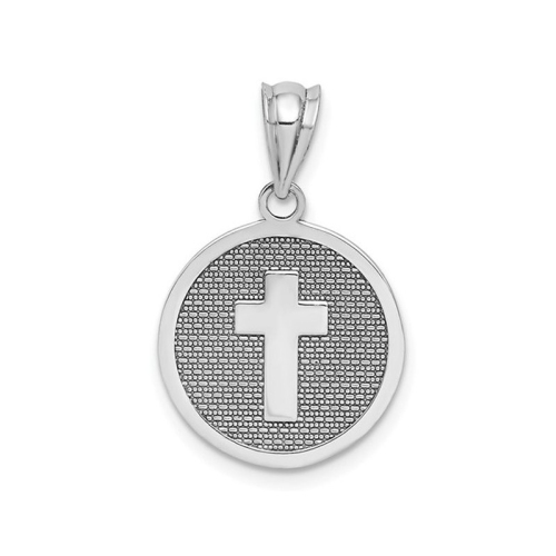 14K White Gold Reversible Circle Cross 1st Communion Pendant (NO CHAIN)