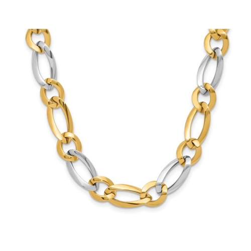14K Yellow and White Gold Polished Link Necklace (17.5 inches)