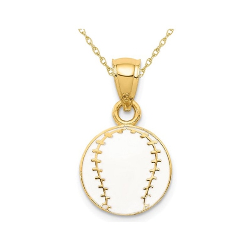 14K Yellow Gold Baseball Charm Pendant Necklace Charm with Chain