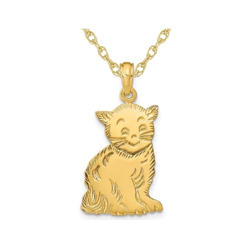 14K Yellow Gold Cat Charm Pendant Necklace with Chain