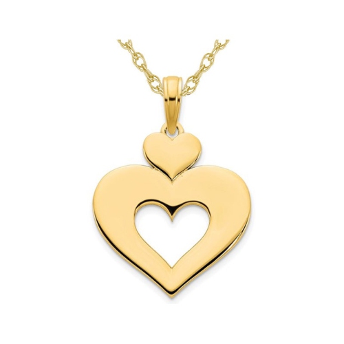 14K Yellow Gold Cut-Out Double Heart Pendant Necklace with Chain