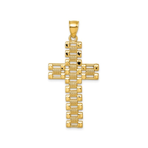 14K Yellow Gold Diamond-Cut Cross Link Design Pendant (NO CHAIN)