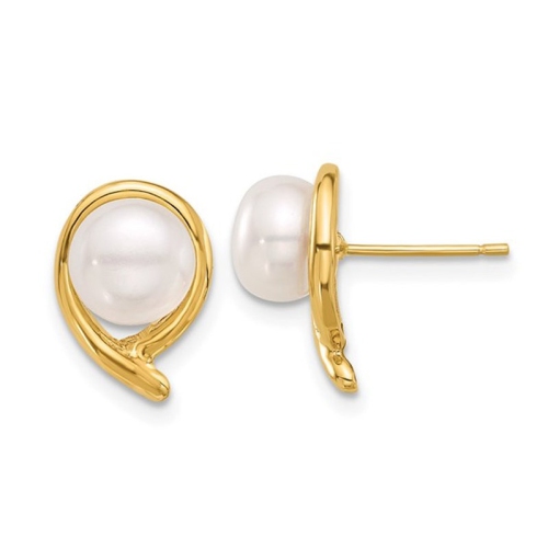 14K Yellow Gold Freshwater Cultured 7-8mm Pearl Post Earrings