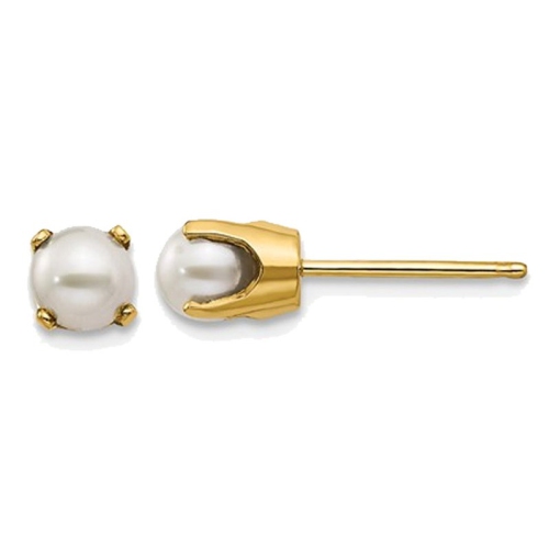 14K Yellow Gold Freshwater Cultured White Pearl 4mm Solitaire Stud Earrings
