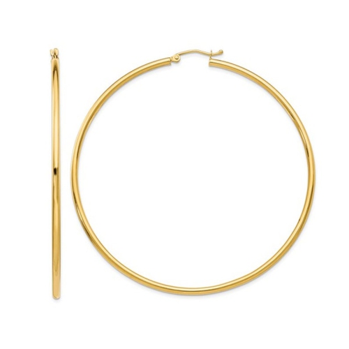 14K Yellow Gold Large Hoop Earrings (2.5mm Thick, 2.5 Inches Height)