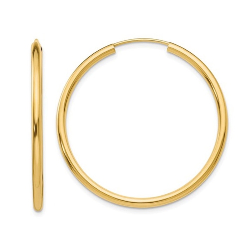 14K Yellow Gold Medium Hoop Earrings 1 1/4 Inch (2.00 mm)