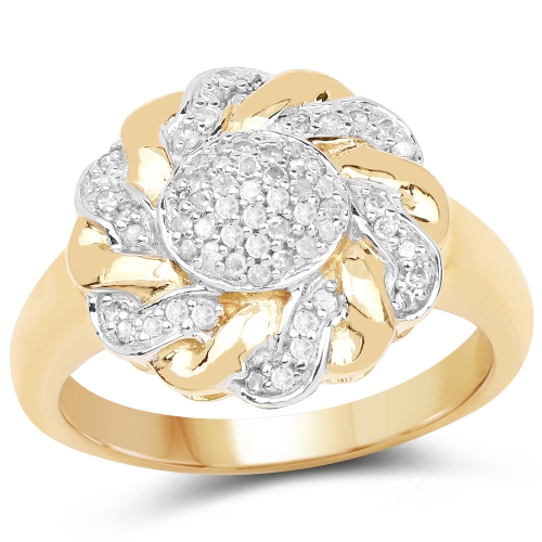 14K Yellow Gold Plated 0.28 ct. Genuine White Diamond .925 Sterling Silver Ring