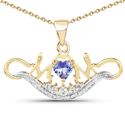 14K Yellow Gold Plated 0.62 Carat Genuine Tanzanite and White Topaz .925 Sterling Silver Pendant