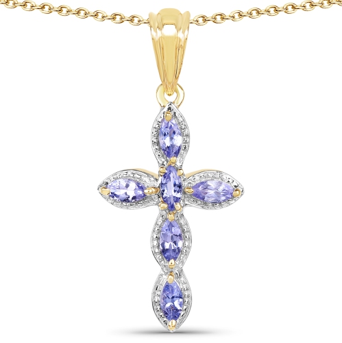 14K Yellow Gold Plated 0.84 Carat Genuine Tanzanite .925 Sterling Silver Pendant