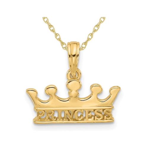 14K Yellow Gold Princess with Crown Charm Pendant Necklace with Chain