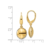 Shimmering 14 karat yellow gold featuring a polished and diamond-cut finish with a unique and striking design, makes these hollow dangle earrings come to life. These gold earrings weigh 2.89 grams and are 1 1/5 inches in length with leverback backings.