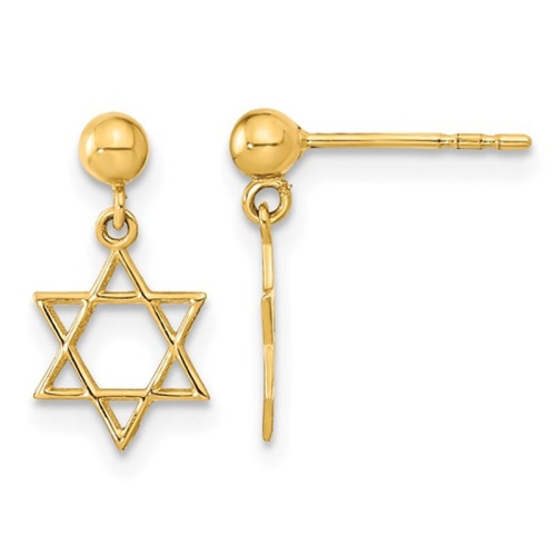 Beautifully crafted star of david dangle earrings earrings crafted from shimmering gleaming 14 karat yellow gold. Thesse dangle star of daivd earrings weigh 0.700 grams.
