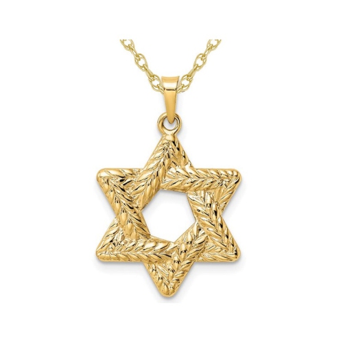 14K Yellow Gold Textured Star of David Pendant Necklace with Chain