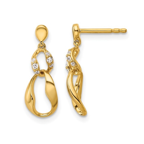 14K Yellow Gold Wavy Oval Dangle Earrings with Accent Diamonds