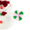 Snowman with lollipop Christmas tabletop decor. Red and green striped hat and buttons. Light weight sturdy construction