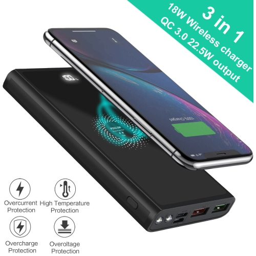 15W Qi Fast Charge 10000 mAh Power Bank with Type-C In / Output and LCD Display