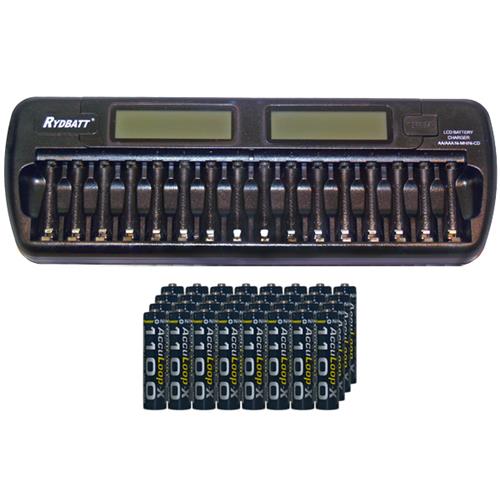 16 Bay AA / AAA LCD Battery Charger + 32 AAA 1100 mAh Acculoop-X NiMH Batteries.
