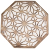 Side table in sleek octagon shape. Natural wood hue with an antique white finish. Carved with diamond flowers and Morrocan-style cutouts
