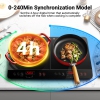 Upgraded dual-zone induction cooktop with left 18-level and right 10-level power settings, 20-level temperature control, and independent heating zones from 50–240°C. Slim and portable design with black glass panel and LED touch controls for energy efficiency and easy cleaning. Supports simultaneous cooking of two dishes, featuring child lock, timer, and magnetic cookware detection.