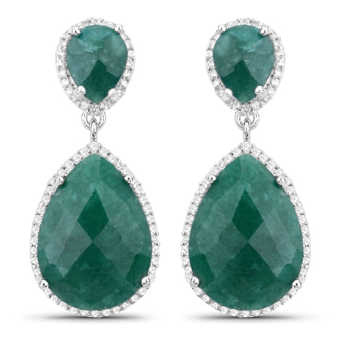 19.42 Carat Dyed Emerald and White Topaz .925 Sterling Silver Earrings