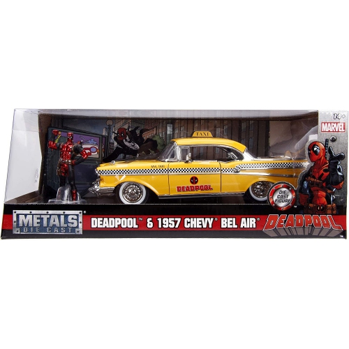 1957 Chevy Bel Air Taxi with Deadpool Diecast Figure, Deadpool - Jada 30290 - 1/24 scale Diecast Model Toy Car