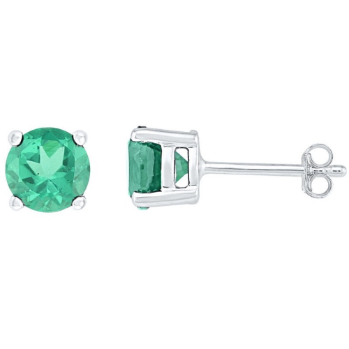 Gleaming lab created green emerald gemstones 2.00 carats (ctw) are set in a sleek sterling silver setting makes these beautiful solitaire gemstones earrings featuring the birthstone of May a great gift.