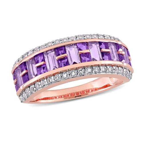 2.04 Carat (ctw) Africa Amethyst, Rose De France and White Topaz Ring Band in 10K Rose Pink Gold