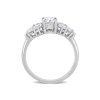 Slide this marvelous created moissanite engagement ring to lend grace and elegance to your loved one. This exciting ring is crafted in crisp gleaming 10 karat white gold and features an oval cut, four prong set created white moissanite gemstone in the center. Surrounding it, four marquise cut, and four pear cut white created moissanite gemstones respectively are set in a three leaf clover shape on