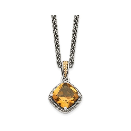 A beautiful antiqued sterling silver dangle drop pendant featuring a prong set cushion cut yellow citrine gemstone the featured birthstone of November. This item includes an 18 inch silver chain.
