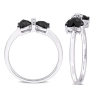 2/3 Carat (ctw) Black Diamond Twin Heart Bow Ring in Sterling Silver