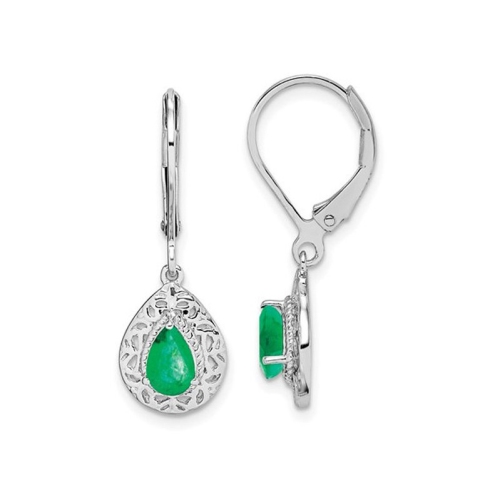 2/3 Carat (ctw) Emerald Leverback Drop Earrings in Sterling Silver
