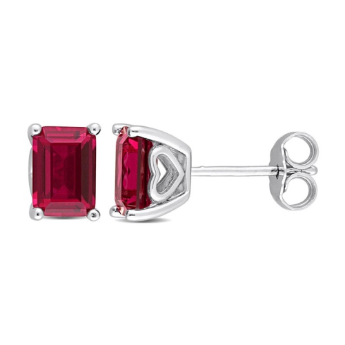 Make your lady feel special on her birthday by gifting these classic Created Ruby Stud Earrings. Crafted in lustrous sterling silver, these ravishing earrings feature two emerald-cut, 4 prong-set, flickering created ruby gemstones (7x5mm) studded in a classic basket setting. Enhanced with a high polished finish, these exquisite earrings are comfortably secured with butterfly closures. Captivating