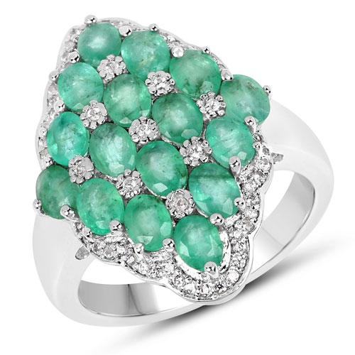 2.68 Carat Genuine Zambian Emerald and White Zircon .925 Sterling Silver Ring