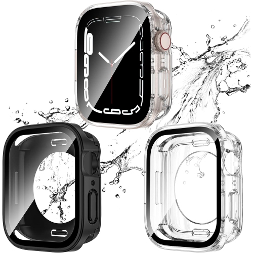 For 45mm This waterproof apple watch case with back cover is designed for Apple Watch Series 8 / 7 45mm. (Please confirm the size by checking the size mark on the back of the watch.)2 in 1 Full Protection The design of the back cover makes the touch more sensitive. This new case make of hard PC material, built-in 9H tempered glass screen protector and back cover, protects your apple watch from dust, bumps, shatter, scratches and accidental drops in 360 degrees, protect the