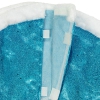Classic blue Christmas tree skirt. Tree skirt is blue glittered base with a mesh lining. White faux fur trim with 2 hook and loop fasteners