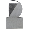 Modern style gray rainfall outdoor water fountain. Textured pedestal base with half moon style top. Self-sustaining water fountain recycles the same water