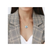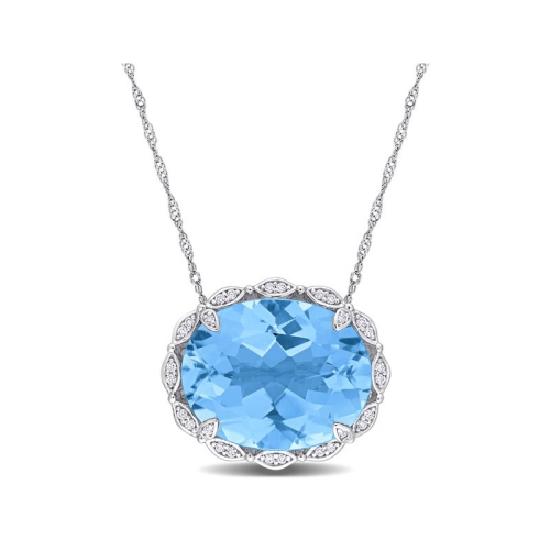 Enhance your wardrobe and add some shimmer with this eye-catching Sky Blue Topaz and Diamond Halo Necklace. Crafted in luminous white gold, this attractive pendant features a oval-cut, prong-set sky blue topaz gemstone (18.5x15mm) as the main stone surrounded by 28 round-cut, pave-set diamonds (G-H, I1) placed in a halo motif. Enhanced with a high polished finish, this classy pendant is suspended