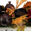 Autumn harvest artificial floral box thanksgiving candle holders. Designed in a weathered gray wooden box that reads "Grateful". Accented with burgundy Mums; pomegranates; pinecones and leaves