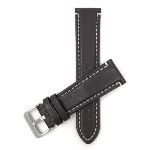 24mm Brown Mens' Waterproof, Genuine Leather Watch Band Strap, Mat Finish, White Stitching