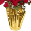 Artificial golden wrapped poinsettia arrangement. 17 blossoms create a super full look. Green realistic leaves and yellow center