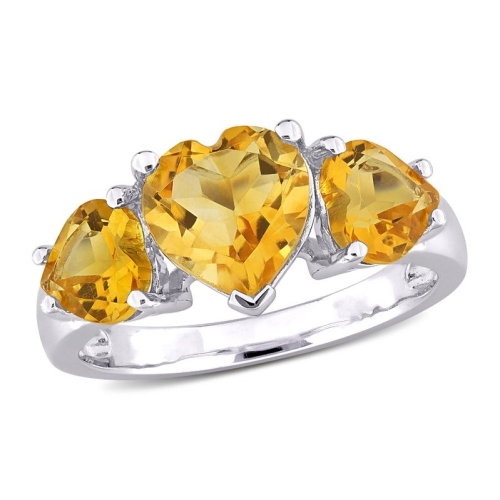 Make a sweet and meaningful statement with our 3.08 carats (ctw) citrine 3-stone heart ring in sterling silver. This charming ring features three heart-shaped citrine gemstones with a total gem weight of 3 1/10 carats. The warm and vibrant yellow hue of the citrine stones adds a touch of brightness and positivity to the design. Crafted in sterling silver, the three-stone setting forms a symbolic r