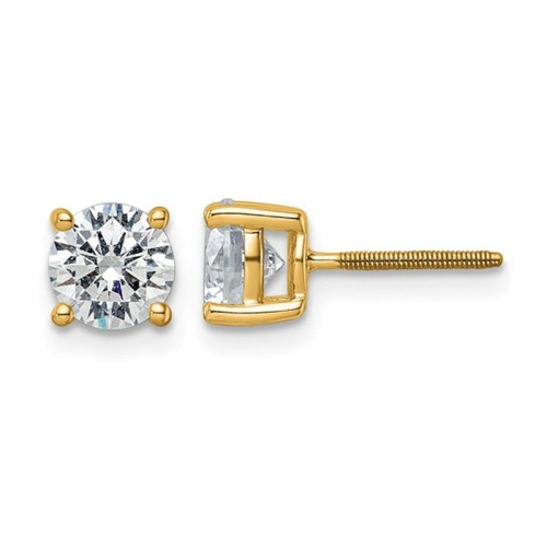 Shimmering polished 14 karat yellow gold is crafted into solitaire stud earrings 4-prong set with sparkling white lab grown diamonds 3.00 Carat (ctw VS,F) in these stunning earrings. These diamond stud earrings includes screwback backings for extra security. Lab-grown diamonds are man-made diamonds that are chemically, physically, and optically identical to diamonds originating from nature. Both h